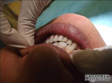初步诊断:患者平时应酬较多,经常吸烟、饮浓茶,导致牙齿表面烟渍、茶垢堆积严重,且存在上排牙齿排列不齐,有散在的间隙问题,X片显示根尖无异常。因此,美白牙齿的同时还需要关闭间隙,排齐牙齿。